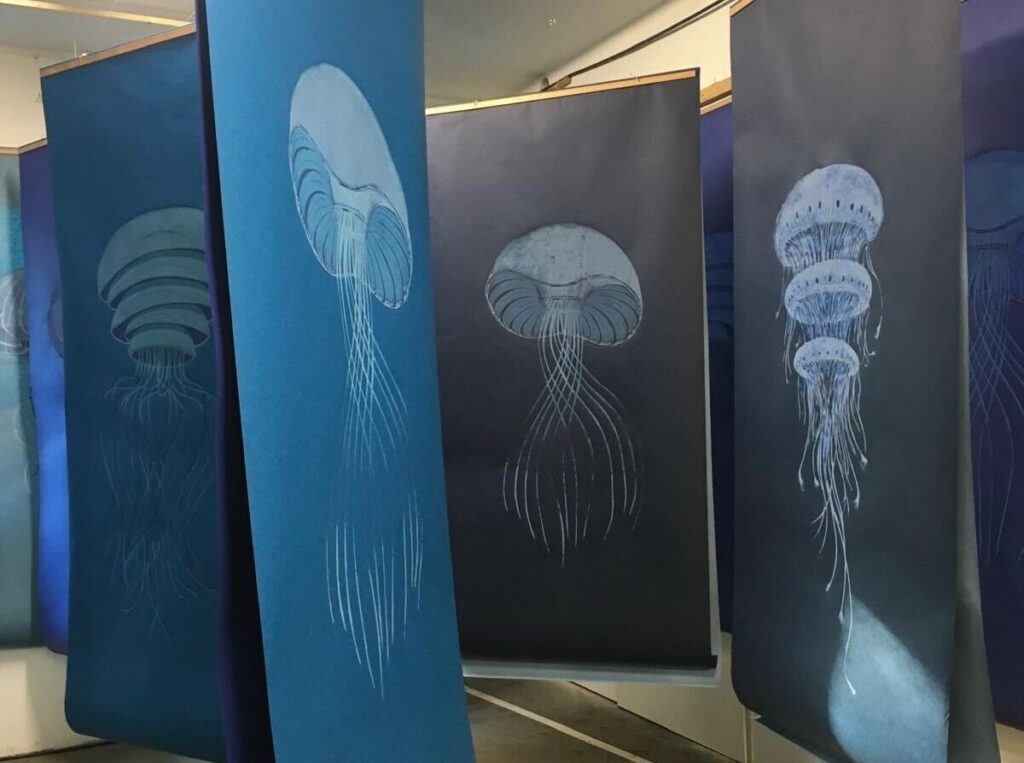 Matthias Erhardt: Quallen Ausstellung in großformatige Linoldrucke